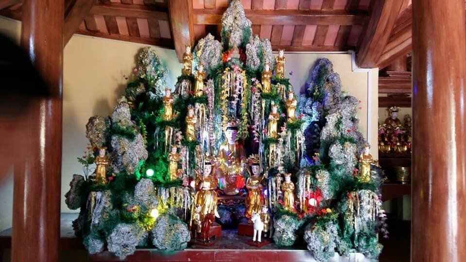 Như ngay từ đầu bài viết chúng tôi có giới thiệu ở hầu hết các Cung Sơn Trang hay còn gọi là Động Sơn Trang thường được bài trí một động đá có chúa Sơn Trang và các cô Sơn Trang ngự, tượng được làm bằng gỗ Mít sơn son thiếp vàng.